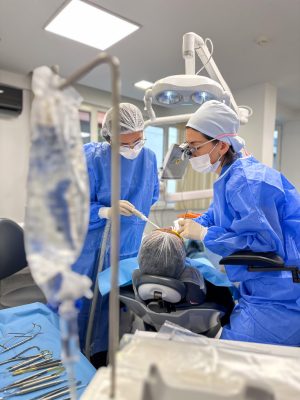 Daha önceden yaptığımız planlamalara göre operasyon günü öncelikle kan alınıp operasyon sırasında kullanacağımız PRF’i hazırlıyoruz. İmplant yerleştirme operasyonlarımızı hazırladığımız cerrahi rehber ile minimal invaziv yöntemlerle gerçekleştiriyoruz. Cerrahi işlemler esnasında dental ozondan yararlanarak operasyon alanının antisepsisini sağlıyoruz.